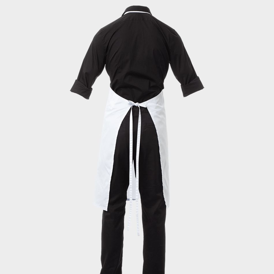 Универсална готварска унисекс престилка с нерегулируем нагръдник, изработена от смесена материя, с връзки за пристягане и удобно прилягане.