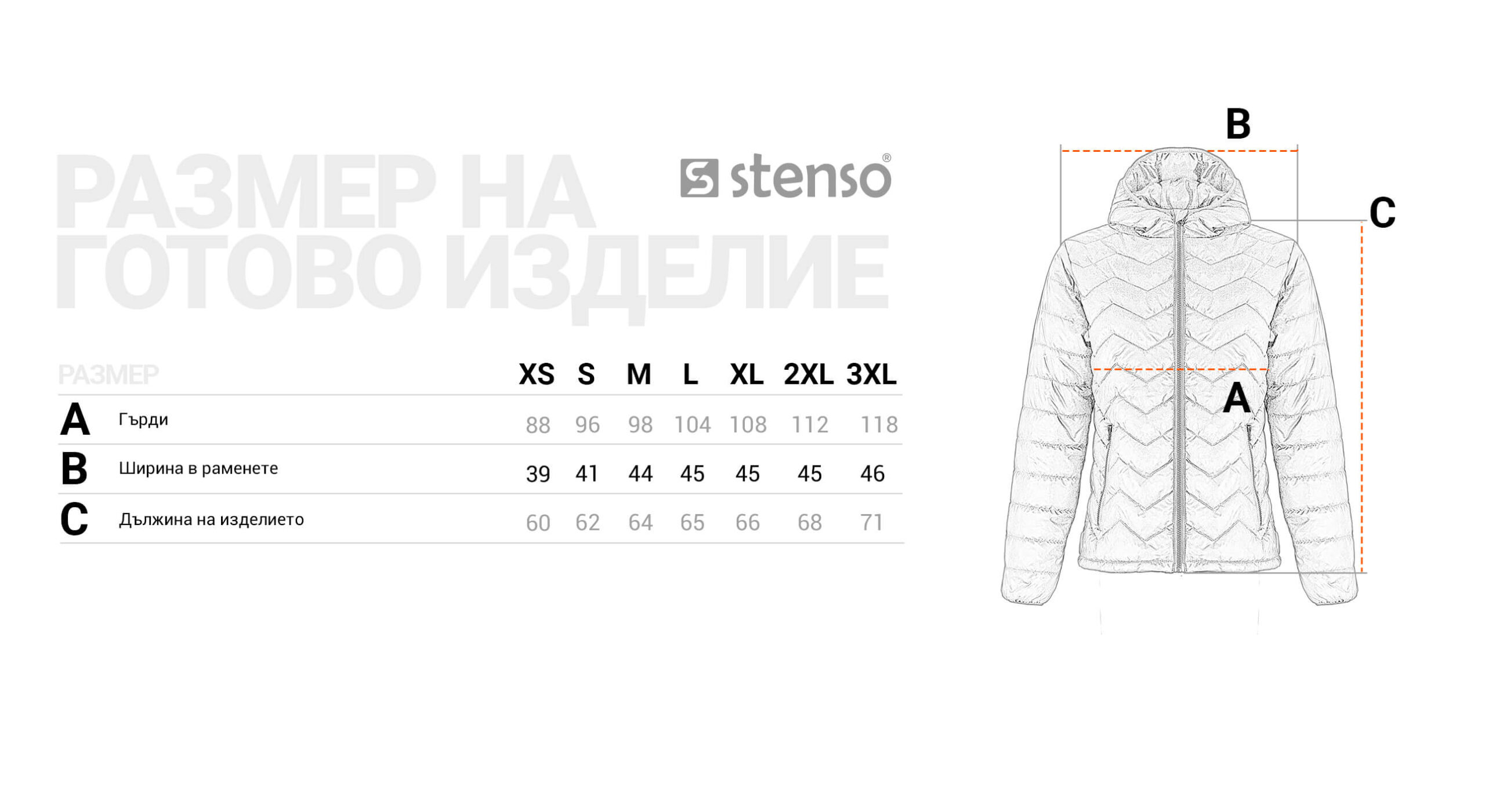 Преди да поръчате погледнете размерната таблица!