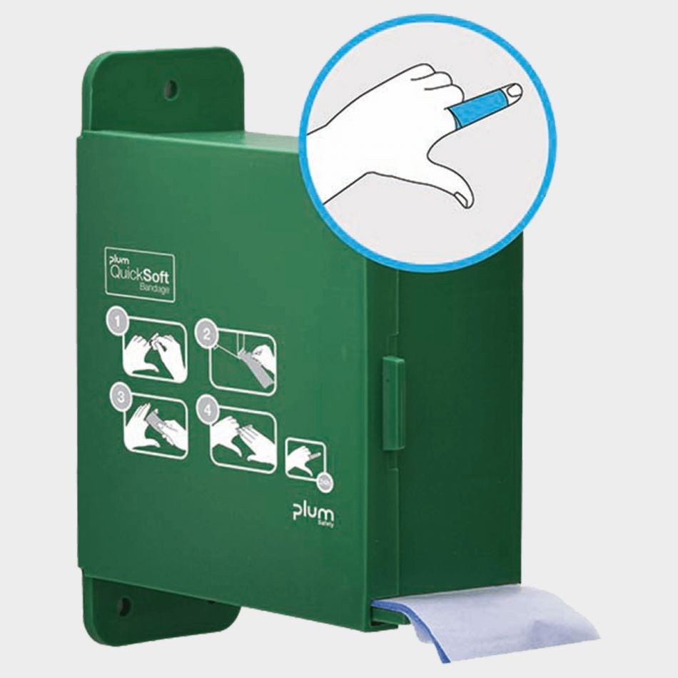 Диспенсер за превързочна лента на ролка Plum QuickSoft Bandage, проектиран за използване на всяко място с риск от наранявания и ожулвания.
