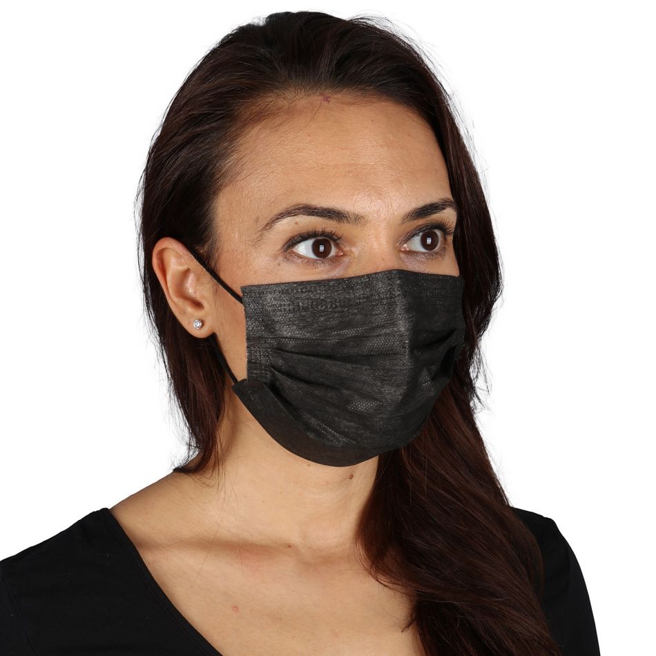 Трислойна хипоалергенна маска за еднократна употреба, непропусклива на влага и частици прах. Лицев слой с изключителна мекота, недразнещ кожата. Среден слой с висока плътност, осигуряващ лесно дишанe. Външен слой от нетъкан текстил. Пластина за утлътняване при носа.
