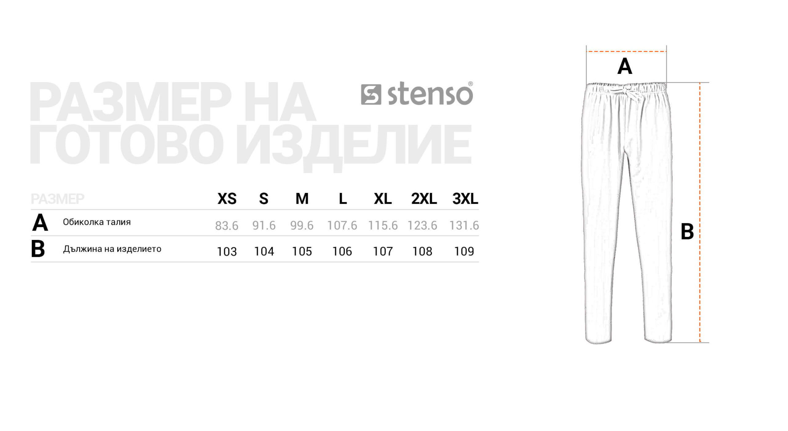 Панталон, ластик в кръста с връзка,два предни и един заден джоб. Водоотблъскваща, незадържаща петна, антибактериална, дишаща материя. Свободна кройка.