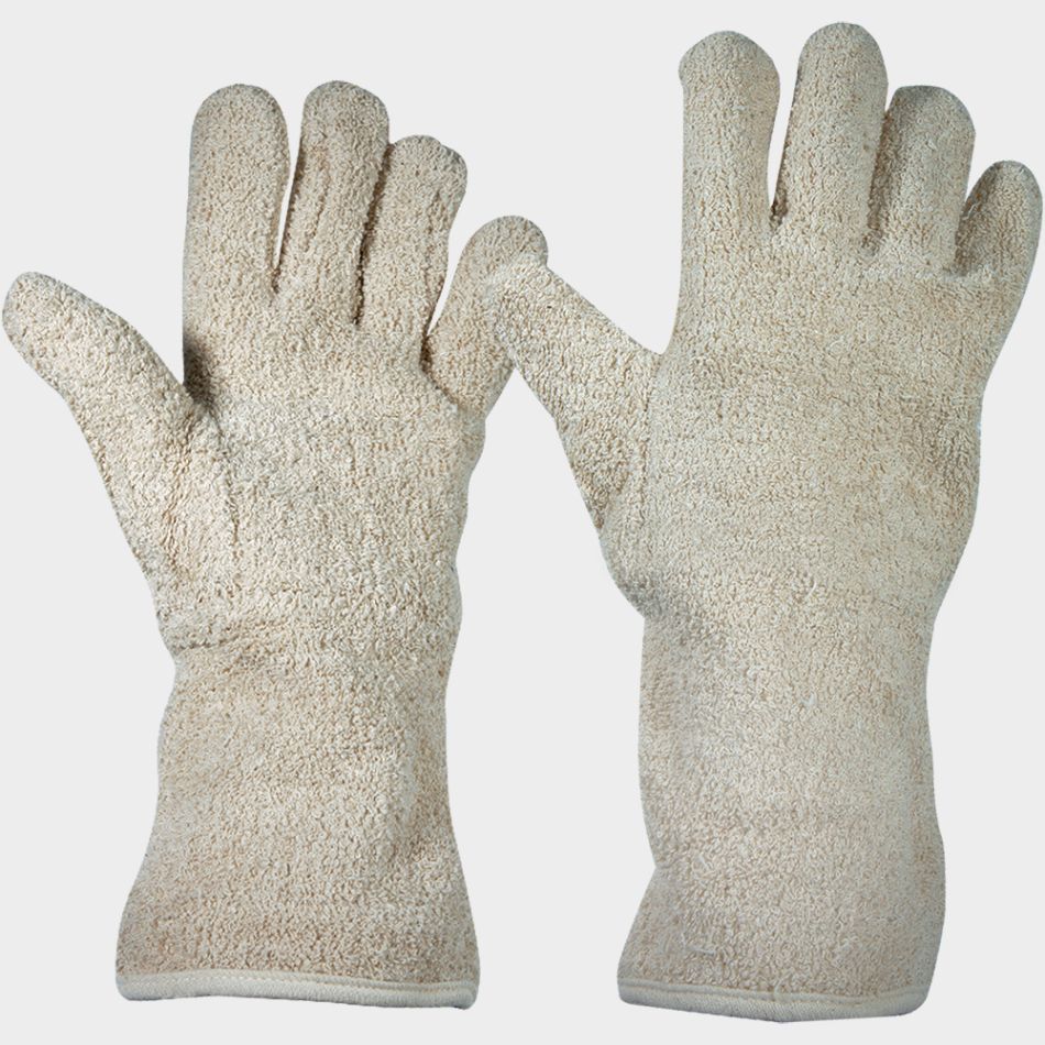 Ръкавици с маншет, изработени от плътен хавлиен памук, обща дължина от 35 см.