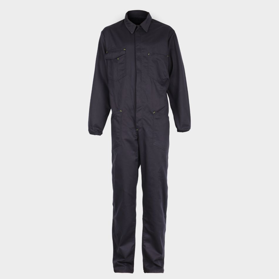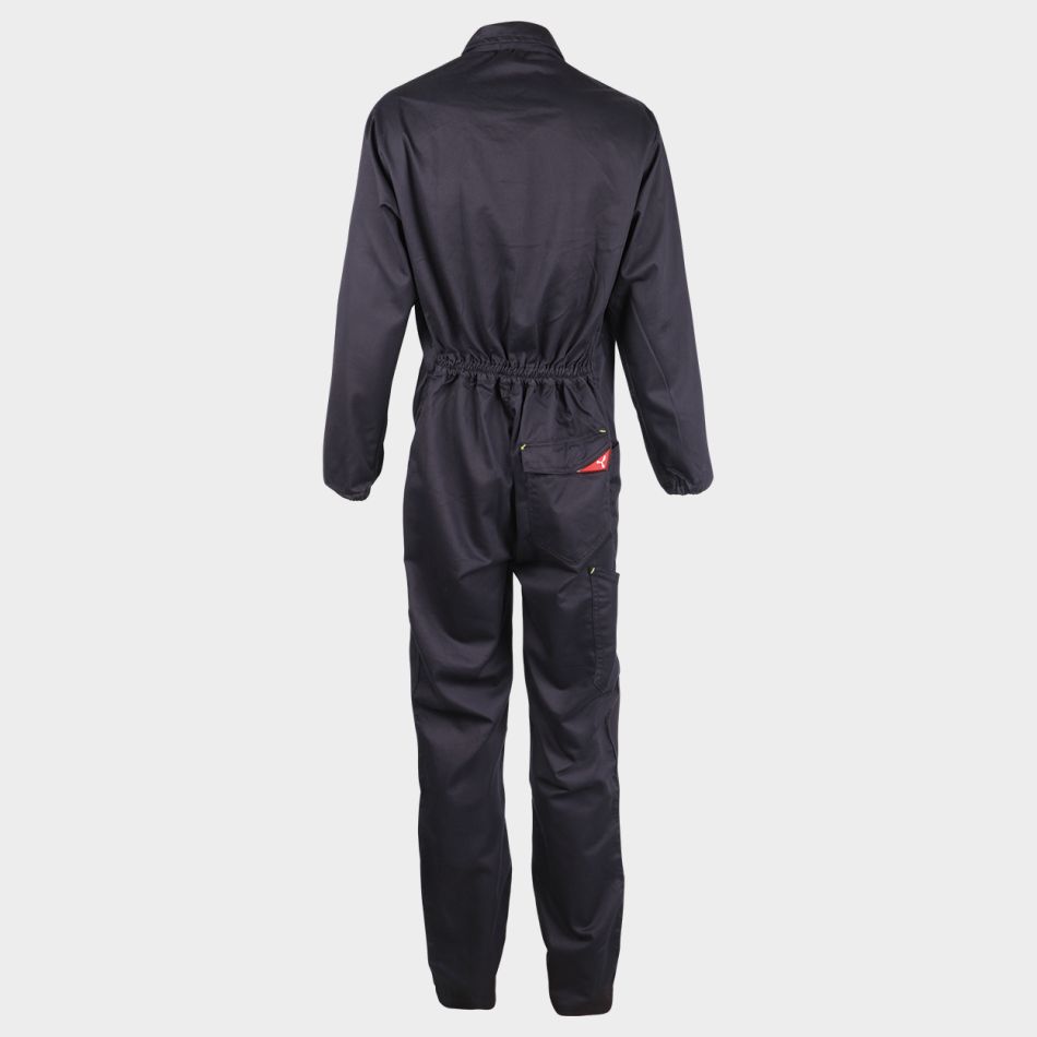 Работен гащерзион с ластик в задната част на талията и на ръкавите. Закопчаване с метален цип с двойно издърпване. Два предни джоба, два нагръдни, единия от които с отделения за телефон, бадж, химикал и закопчаване с велкро . Подсилени, двойни шевове на седалището и вътрешната част на крачолите.