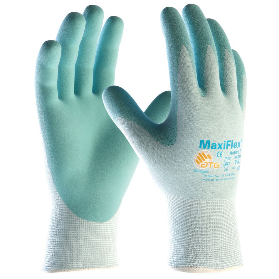 Патентовано покритие от микро пяна, безшевна, плетена полиестерна подплата. Длан топена в нитрил. Конструирани и разработени като дишащи, MaxiFlex® Active™ осигурява „ефект на благосъстояние“ по време на и след работа, поради освобождаването на хиляди микрокапсулирани специализирани съставки, които включват Алое Вера и Витамин Е. Подпомага информираността за рак на гърдата. Дължина от 25 см.