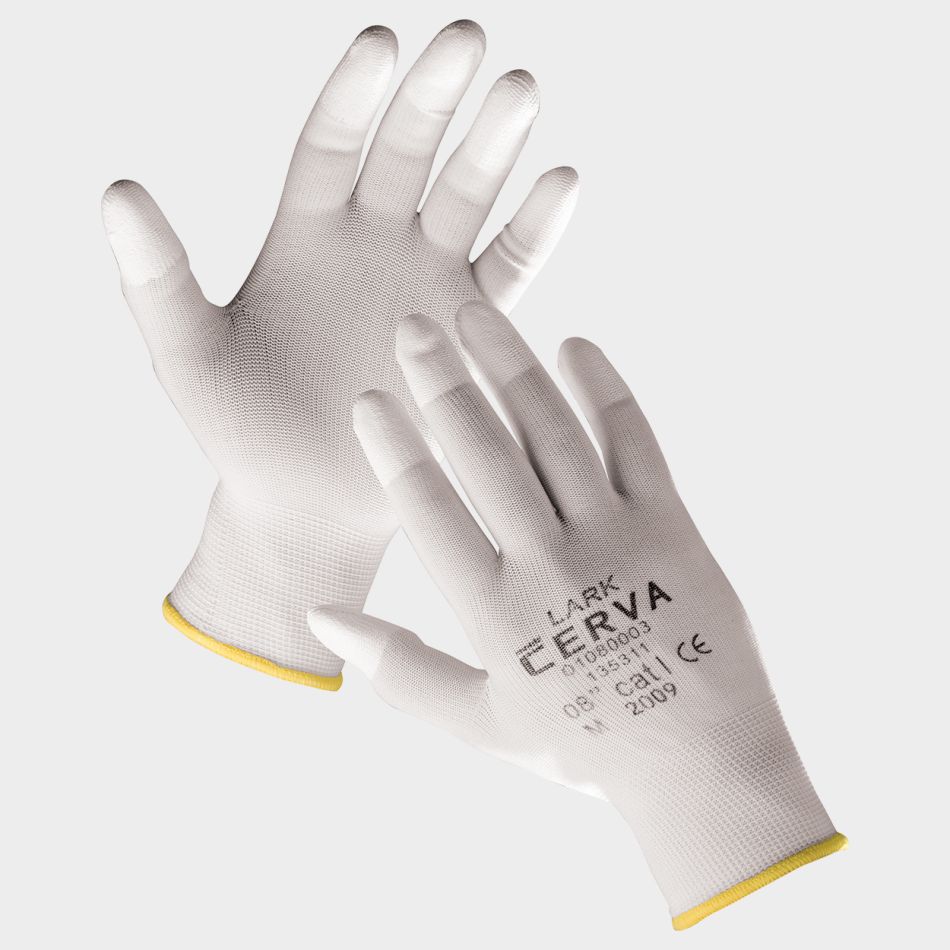 Ръкавици изработени от полиамидно ластично трико, пръсти топени в полиуретан, еластичен маншет.