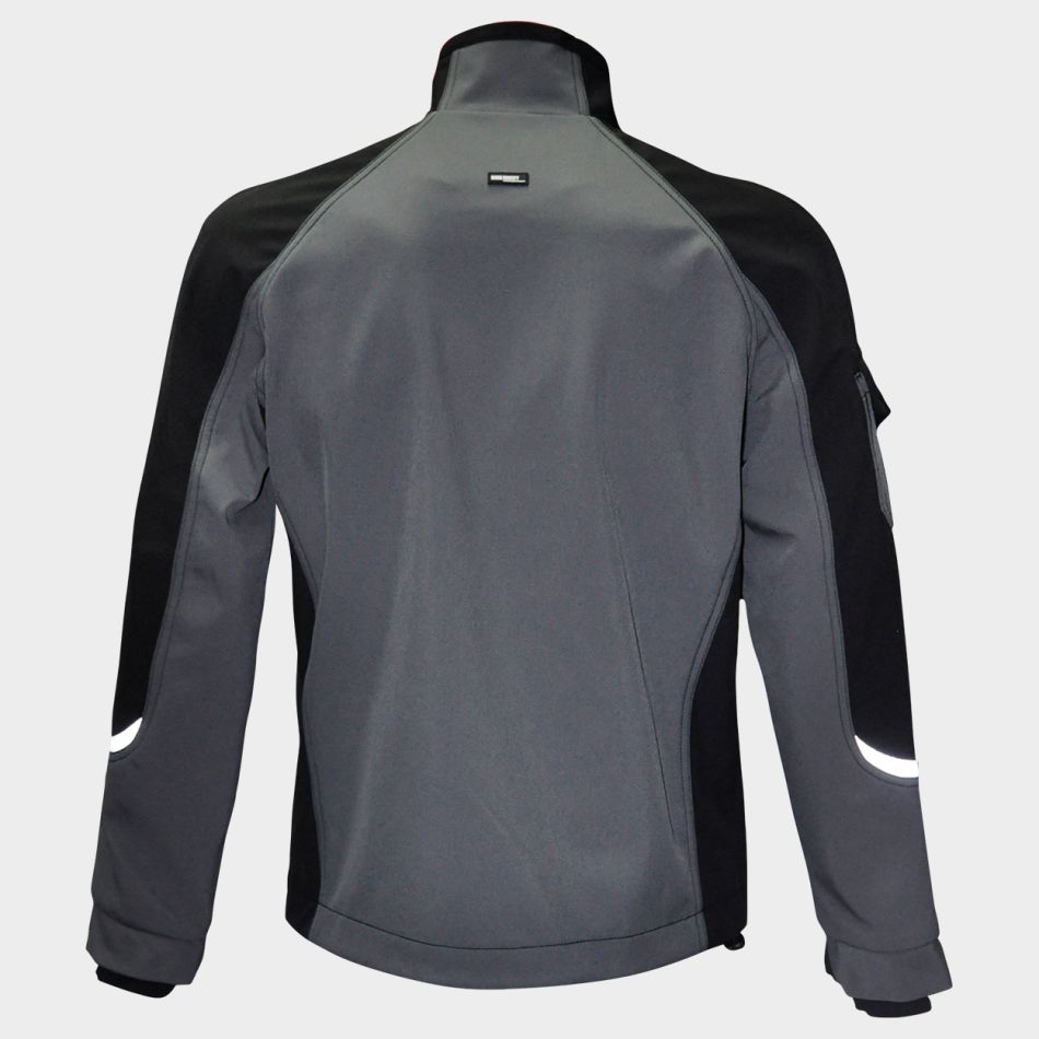 Водоустойчиво софтшел яке, подходящо за работа на открито и туризъм, светлоотразителни кантове и ластични маншети.