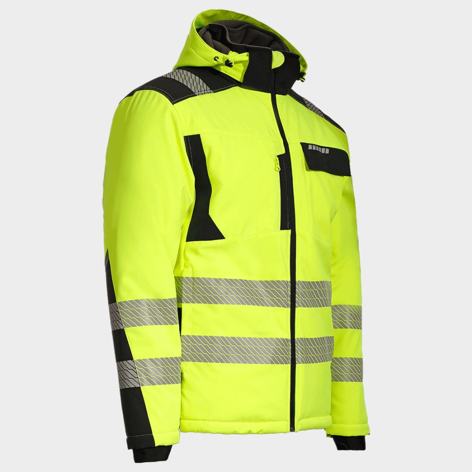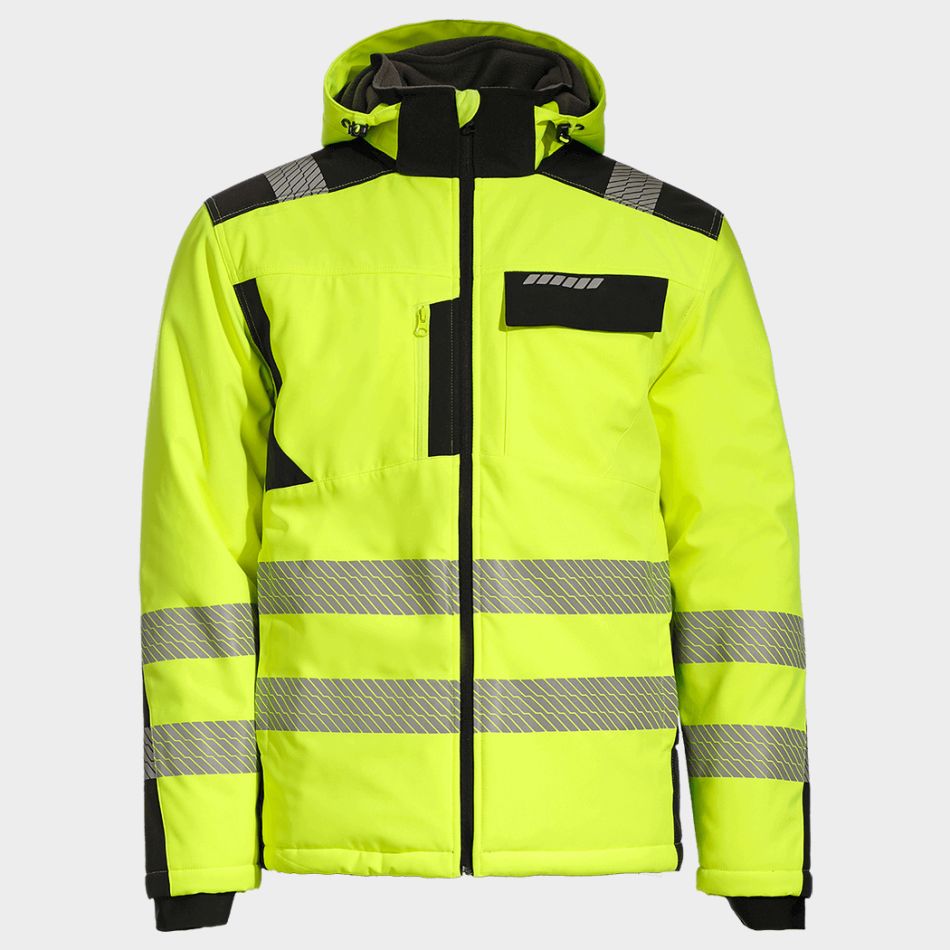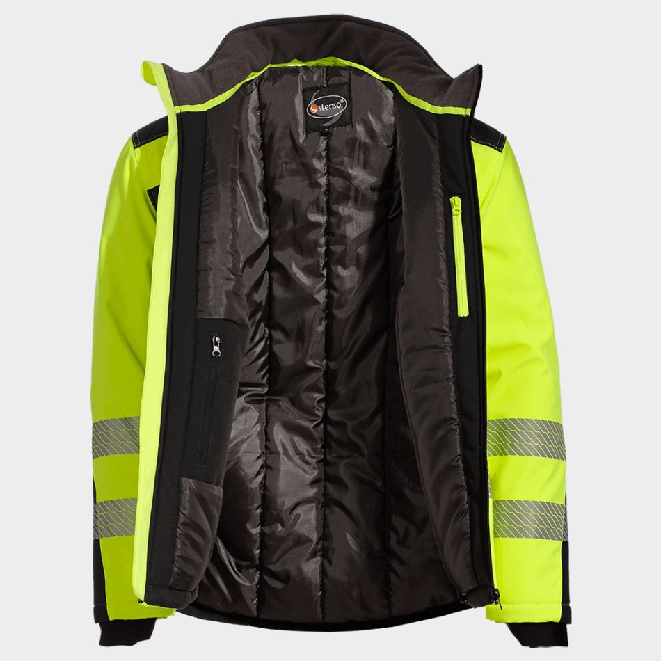 Сигнално софтшел зимно ватирано яке със светлоотразителни елементи.