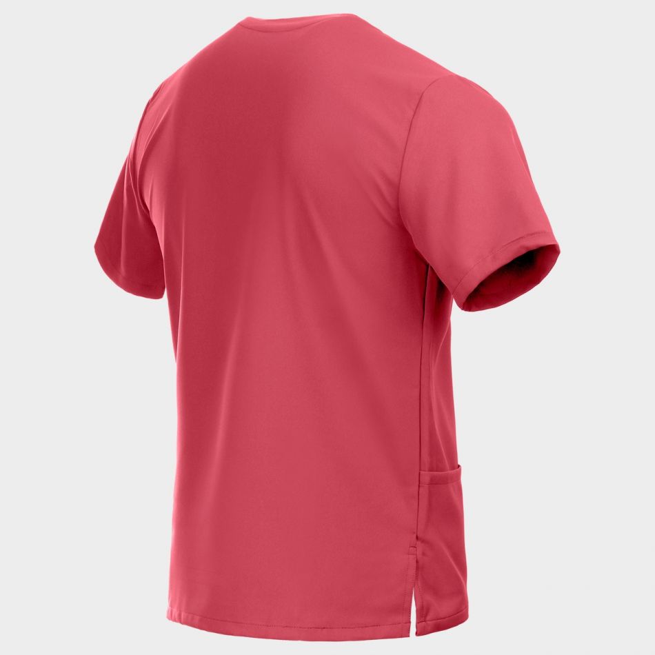 Туника с къс ръкав, V-образно деколте и странични цепки, два долни външно пришити джоба, единият от които с вътрешен по-малък. Водоотблъскваща, незадържаща петна, антибактериална, дишаща материя. Свободна кройка.