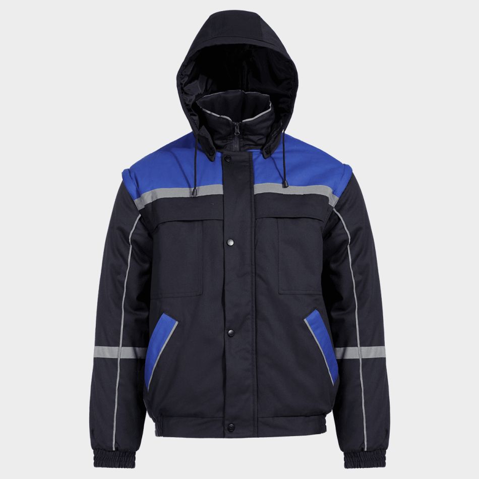 Работно яке със свалящи се ръкави, което лесно се трансформира в елек за максимална адаптивност през всички сезони. Дизайнът комбинира удобство и сигурност с отлична видимост благодарение на светлоотразителните ленти.